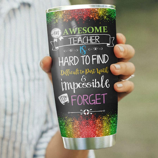 Unifinz Teacher Tumbler 20 Oz Awesome Teacher Is Hard To Find Difficult To Part With And Impossible To Forget Tumbler Cup 20 Oz