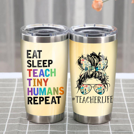 Unifinz Teacher Tumbler Cup 20 Oz Teacher Life Eat Sleep Teach Tiny Humans Repeat Tumbler 20 Oz