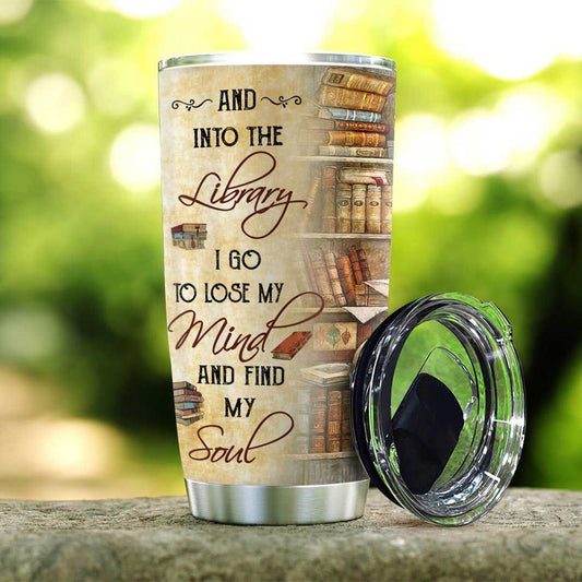 Unifinz Book Tumbler Cup 20 Oz Vintage And Into The Library I Go To Lose My Mind And Find My Soul Tumbler 20 Oz