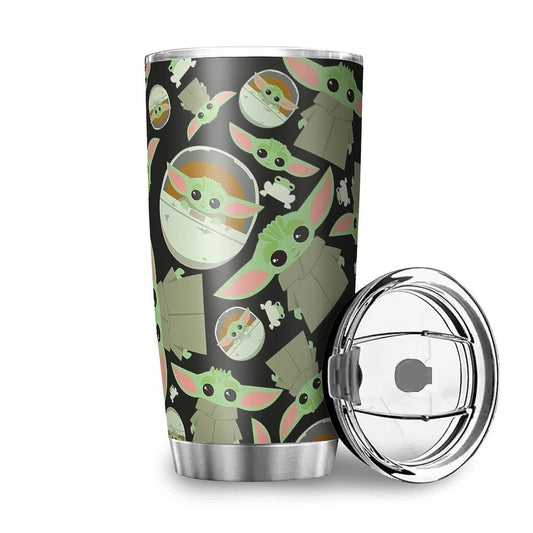 Unifinz SW Tumbler 20 Oz Baby Yoda Grogu Cute Frog Pattern Black Tumbler Cup 20 Oz Travel Mug