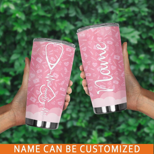 Perosnalized Nurse Tumbler For Nurse Nurisnng Stethoscope Heart Beat Tumbler 20oz Custom Nurse Gift Pink