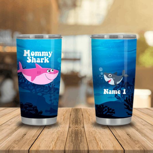 Personalized Mother Tumbler Custom Mommy Shark Tumbler 20oz Blue