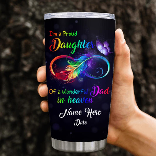 Personalized Memorial Tumbler I'm A Proud Daughter Of A Wonderful Dad in Heaven For Daughter Butterfly Tumbler 20oz Custom Memorial Gift Black M20