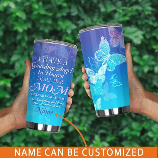Perosnalized Memorial Tumbler I Have A Guaridan Angel For Mom Dad Son Daughter Butterfly Tumbler 20oz Custom Memorial Gift M213