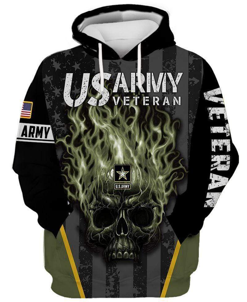 Military Veteran Hoodie American Flag Skull Fire US Army Cool Hoodie US Army Hoodie Military Apparel