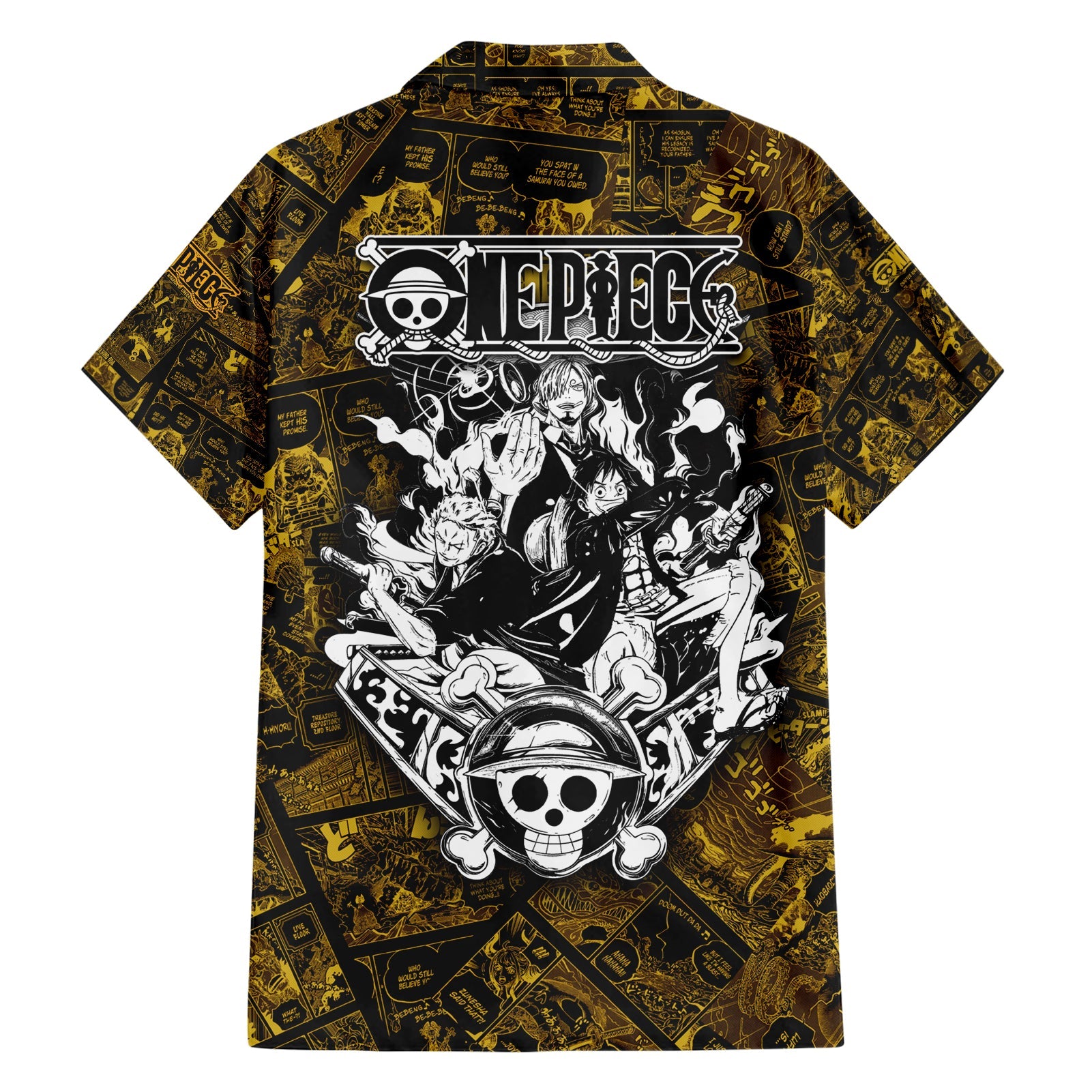 One Piece Hawaii Shirt Luffy Zoro Sanji One Piece Manga Pattern Hawaiian Shirt Black Yellow Unisex