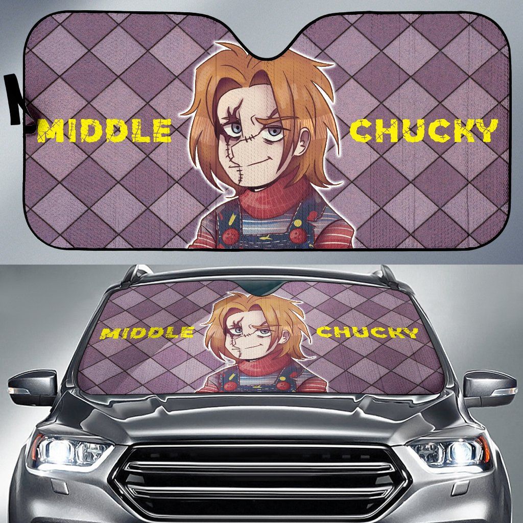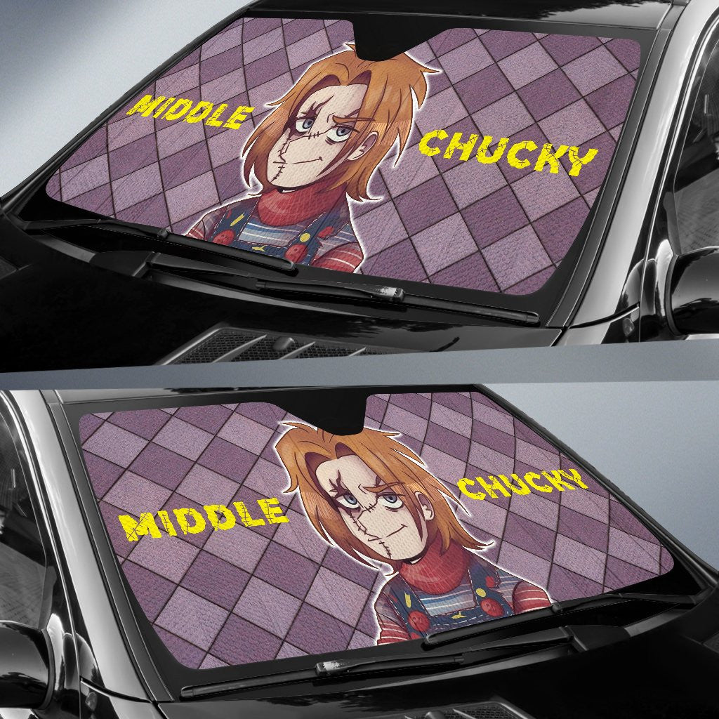 Unifinz Horror Chucky Windshield Shade Middle Chucky Doll Cartoon Car Sun Shade Horror Chucky Car Sun Shade