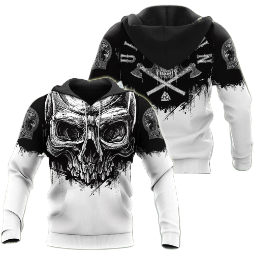 Viking Hoodie Ulfhedinn Art Skull Axe Black White Hoodie Adult Full Size