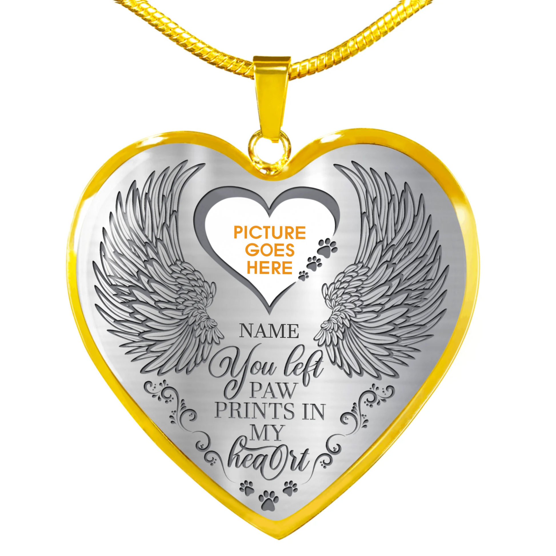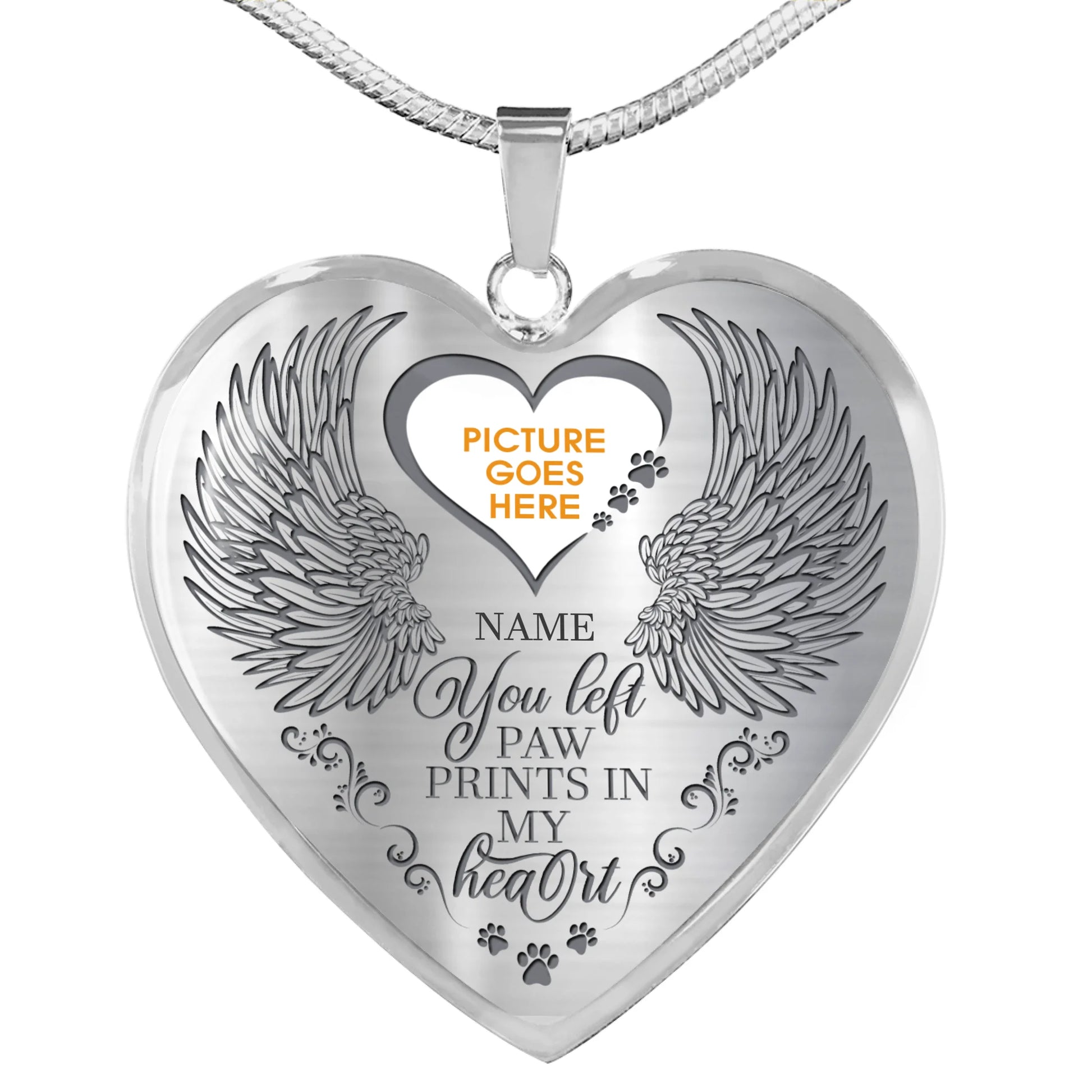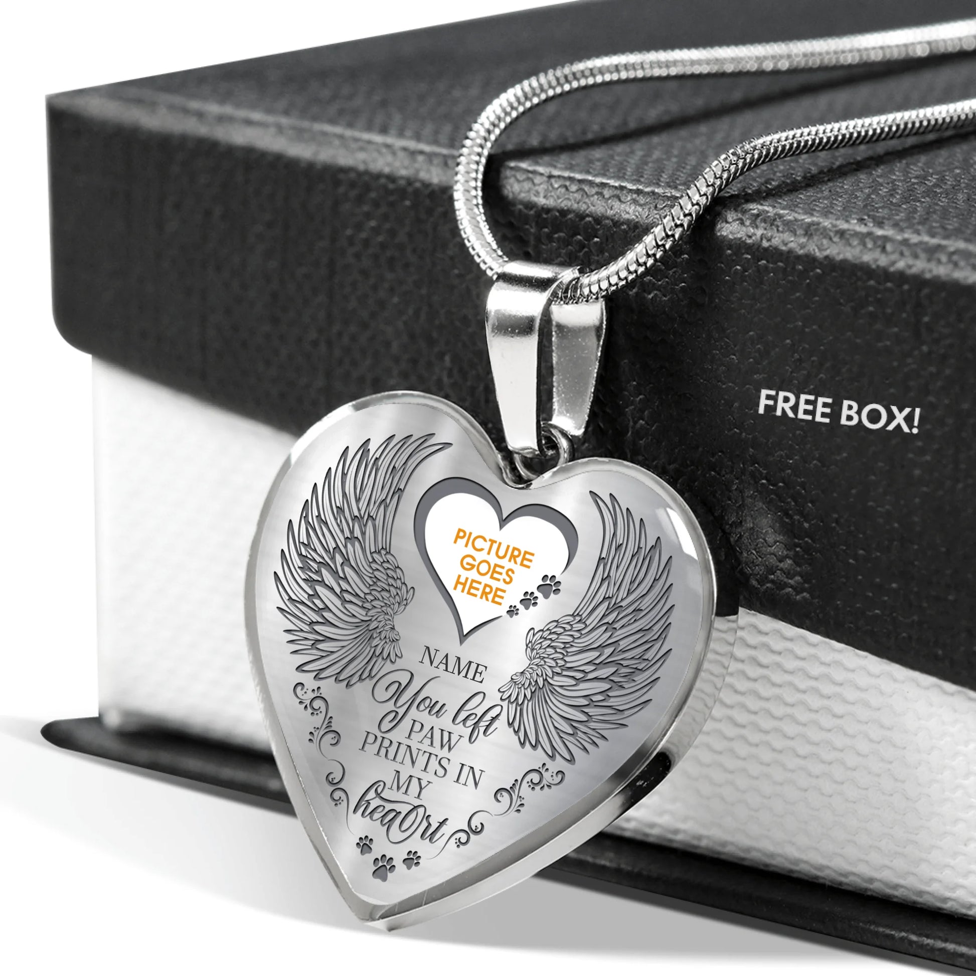 Personalized Pet Memorial Heart Necklace Paw Prints In My Heart For Pet Custom Memorial Gift M71